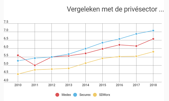 publiek: 5,6%→6,6% = Δ +18% SDWorx : 4,5%→5,9% = Δ +31% Securex : 5,3%→7,1% = Δ +34% |