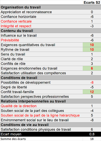 | Conflit travail-famille +12 | Environnement social sur lieu de travail - 8 |